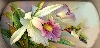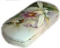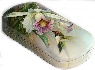 Description: This elegant box is an original creation of the outstanding Fedoskino painter, Oleg Gavrilov. On the box's lid the artist has drawn a hummingbird hovering over the white orchid. The scene is painted against the light green background. The same tone with addition of light blue and pink patches has been chosen for covering the box's exterior. Brilliant pieces of gold metal leaf shine through the hummingbird, and through some leaves of the orchid.