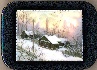On this box the artist depicts the view of village street in Winter. The wooden houses covered with snow. Birds are sitting on electrical or radio wires.The smooke is coming out from the pipe of the stove of one of the houses...