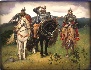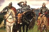 Here we can see three famous Russian Bogatyrs:Dobrynya Nikitich, Ilya Muromets and Alyosha Popovich.