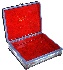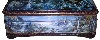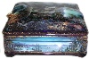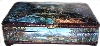 The box's exterior is covered with silver powder, and this silver area is additionally covered with light violet and brown oils. On the box's front side Knyazev has painted valleys and mountains.