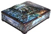 The box's interior is covered with red lacquer. On the lid's interior the artist has written in gold his name, the title "Lord of the Rings", Fedoskino and the year of 2010. This box is made of papier mache. The lid is hinged from the top of the scene, and the box rests on four legs.