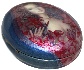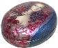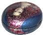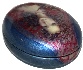 The portrait is painted against the shining silver and light blue background. The box's sides are decorated with blue oil paint.