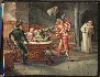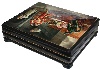 Description: Yuliya Golobeonkova is a talented Fedoskino artist who is responsible for this interpretation of some European painting painted in 17th-18th centuries. The box depicts a group of tipsy gentlemen and a couple of priests indignant at their shameful behavior.