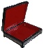 The box is constructed from paper-mache. Black lacquer is used to paint the exterior of the box while red lacquer completes the interior of the work.