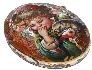 Description: This small oval box is a creation of the well-known artist Natalya Orlova. The work is called "...and want to (get), and stinging...", and shows a little girl who just stung her hand with the needles of a Hedgehog who was attracted with the juicy and tasty apple.