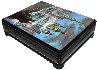 |                 |  |  The romantic beauty of St.-Petersburg has been masterfully expressed in this box by one of the leading Fedoskino artists, Vladimir Monashov.  Here we can see two elegant ladies strolling along the embankment of the Niva River. They breathe in cold winter air and discuss high-society gossips. The scene is painted in different shades of blue and gray of oil paints. These tones correspond perfectly to the atmosphere of the city called "Russian Venice". Lustrous gold and silver paint that shines through the oils is used to highlight the architecture. The domes of the cathedrals are painted in brilliant gold paint. Mother-of-pearl inlay shine through the architecture of the cathedrals. The costume of one the woman is inlaid with mother-of-pearl that sparkles brightly with a variety of tones raging from electric green to deep violet. The clouds look realistic being highlighted with silver powder. The composition is an absolute delight.