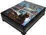 The scene is framed with a gold line; the box's sides are decorated with two parallel gold lines.
