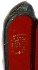 The box's exterior is covered with green oils mixed with aluminum powder. Its interior is traditionally red.