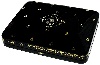 The box is constructed from paper-mache. Black lacquer is used to paint the exterior of the box while red lacquer completes the interior of the work. The lid is hinged from the top of the composition, and the box rests flat. The box's exterior is adorned with elegantly designed silver scan ornaments (composed of silver metal shapes glued to the box manually). The work is signed with the artist's name, and the titles.It is also signed that Nechaev is the author of this original composition.