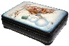 The scene is framed with a gold line; the box's sides are decorated with two parallel gold lines.