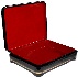 The box is constructed from paper-mache. Black lacquer is used to paint the exterior of the box while red lacquer completes the interior of the work. The lid is hinged from the left of the scene, and the box rests on four legs.