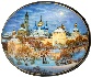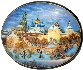 The composition is painted in white and blue tones. Gold paint highlights the domes of the cathedrals, partly covered with snow . The architecture is expertly executed. Its lines and perspectives hold a dignified precision that is a result of the excellent execution!