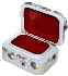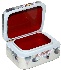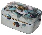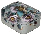 The box's exterior is creamy gray, while the interior is traditionally red. On the box's sides the artist continues to paint the flowers ,flower herbs and ladybirds. Each of the ladybirds depicted here are crafted three-dimensionally as well as flower on the top right corner of the composition! The box rests flat.