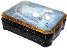 Painted on the paper-mache box, the composition is framed by a line of gold paint. Black lacquer is used to paint the outside and red lacquer is used to paint the inside of the box. On the box's sides the artist has painted a whimsical pattern in the form of gold and silver scrolls and dots. A hinge is located to the left of the composition, and the box rests on the four legs. The work is signed with the artist's name, Fedoskino, the title and the year of 2011 on the interior of the base of the box.