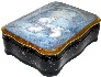 Through successfully combined colors and entrancing details, Chirkov enchants the viewer while contemplating this scene. Various shades of blue oils predominate here. With the help of silver powder used as an under layer for this scene the artist fills the light blue, misty background with a magic glow. The artist inlays a piece of mother-of-pearl into the skies painted in the background. The use of mother-of-pearl, silver and gold paint brings an incredible amount of light from the piece!