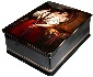 The scene is framed with a gold line; the box's sides are decorated with two parallel gold lines.