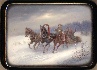 Here the artist depicts a couple returning home in the sledge. A man and a woman sit in the sledge pulling by a troika of horses, and peasant woman is trying to talk to a coachman. We can see her open mouth and her hand over her head...
