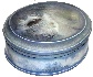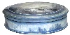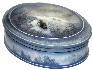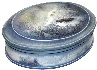 |                                     |  |  This oval shaped box has been painted by Valeriy Kovalyov from the village of Fedoskino. The work is called "Winter in the Patrimony", and shows a traveler sledging out of the winter forest at the evening. He almost approached his house and the young moon has shown in the skies.Both the box's exterior and interior are covered with the complex pattern painted in different shades of blue and violet oils that looks like imitation of stone.