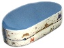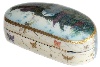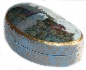 The edges of the lid are outlined with gold. The box's sides are decorated with an intricate gold floral pattern accompanied by a simple gold design that wraps around the bottom part of the box's exterior.Interesting, that on this box an Artist used unusual design part of the box's side is painted with white color and the other one-with light blue tine!
