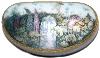 The box shows a pergola which is painted on the background, but on the other hand it is in the middle of the composition. The road to pergola is going through the fields of different kind of flowers. Rogatova has already created a series of works painted on this theme. The scene is painted in bright oils over silver metal powder that beautifully shines through the oils. Gold paint is used to draw the bees, butterflies and some of the plants.