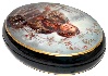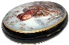 Description: Liliana Slaeva is the talent behind of this beautiful Fedoskino box. The work is called "Ashberry (or Rowan)", and shows a beautiful girl stayed at the wooden fence surround the ashberries that are so loved by the birds in Central part of Russia in the winter. The girls is dressed in traditional Russian winter costume and her hands are covered warm mittens. Beautiful red woolen scarf is covered her head.The costume and a scarf are painted with the aid of golden leaves, that are shines through them.