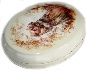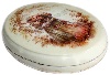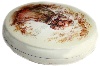 The scene is painted in light brown oils against the cream background. Cream tone has been also chosen to cover the box's exterior while the interior is traditionally covered with red lacquer. The box's sides and the bottom are also decorated with a golden dust mix.