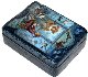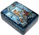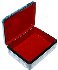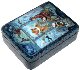 The box is made out of paper-mache. The sides and the base of the box are covered with a blue paint imitating the blue marble. Red lacquer covers the interior of the box. The box is hinged from the left of the scene, and rests flat. The work is signed with the name of the artist.
