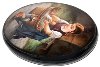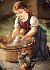 Description: This brilliantly painted sentimental scene is a creation of the famous Fedoskino artist Lubov Goleneva. The composition shows a girl washing several of her favorite dolls in a wooden tub.