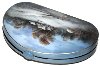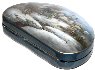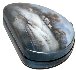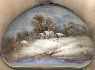 The landscape is painted in dark blue, grey and white tones of oils that successfully reflect the state of nature of the chosen season. To paint these two winter landscapes the artist has used two surfaces of the box . The bottom part of the box's body is decorated with a wide gold ribbon. The box's exterior is covered with blue and gray lacquers whereas its interior is covered with red lacquer.Both pictures from both sides are framed with a gold lines.