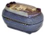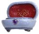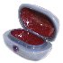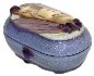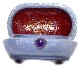 The box's exterior is covered with gray-blue oils mixed with aluminum powder. Its interior is traditionally red.