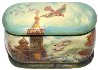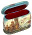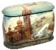 Description: This originally shaped box was painted by the leading Fedoskino artist Yelena Khomutinnikova. This artist always creates interesting works, and it's a real pleasure to contemplate them. Collectors and art enthusiasts value highly creative style of this brilliant artist.
