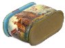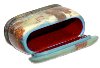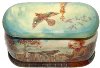 The painting extends on the whole surface of the box. The scene is painted over gold metal paint, and shines brightly creating a festive mood. More sparkle and splendor comes from mother-of-pear set into the sky and some of the birds.
