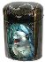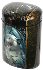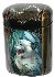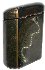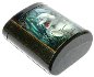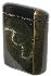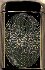 The box's back side and the top of a lid are richly decorated with a complex ornamental scan pattern. Hair-thin silver, wavy threads (cut out of silver metal sheets) come out like rays from a single point. The silver threads reflect the sunlight and shine brightly; their wavy structure gives a three-dimensional effect of to a single pattern. The box's sides are covered with dark green paint mixed with silver powder and gave an effect of green marble stone.