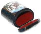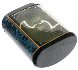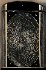 The box's back side and the top of a lid are richly decorated with a complex ornamental scan pattern. Hair-thin silver, wavy threads (cut out of silver metal sheets) come out like rays from a single point. The silver threads reflect the sunlight and shine brightly; their wavy structure gives a three-dimensional effect of to a single pattern. The box's sides are covered with dark blue paint mixed with silver powder and gave an effect of blue marble stone.