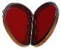 The box is constructed out of paper-mache. Black lacquer covers the exterior and red lacquer covers the interior of the box. The box has a hinge from the bottom of the scene, and rests flat. The work is signed with the artists names and the title of the work ("The House of Dolls").