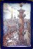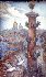 Chirkov has used bright red (brick) tones of oils to paint the column whereas the buildings located in the background are painted in light grey tones. This creates the depth of the composition, and focuses the viewer's attention on the column. A large piece of mother-of-pearl shines brightly through the column and the sails of the ship. Additional luster of the cathedral comes from gold and silver paints. Both gold and silver paints create brilliance of the pavement; silver paint is used to highlight the clouds in the sky.