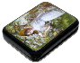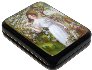 Description: This interesting composition of a beautiful lady standing surround a blossoming garden is a creation of talented Fedoskino artist Yuriy Butsynsky.