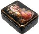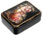 Description: Well-known Fedoskino artist Liliana Slaeva is the author of this lovely box. The work is called "A Date", and shows a couple that is fall in love. These two figures are radiates the tenderness and the fluids of love. A couple is dressed in Russian costumes of the 19th Century. A girl is wearing Sarafan and the guy is wearing Kaftan. Over their heads we can see branches of golden trees. A girl and a young man are so close to each other so we can tell that just in a moment they will kiss.A girl is putting on the head of a young man a wreath of field flowers.