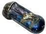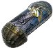 The scene is painted in blue, gray, and brown tones of oils over silver powder that helps to strengthen the oils. Gold paint is used to detail the witch's dress and high-light the details. A large piece of mother of pearl is shines from the dress of the witch. The scene is extended on the box's sides where the artist continues to paint.