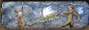 Anokhin's otherworldly style and subtle palette are easily recognizable. The palette includes blue tones. Silver metal powder shines through the hair. Brilliant gold paint is used to paint the wings of the dragonfly.