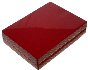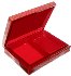 The box is constructed out of paper-mache. Red lacquer covers the exterior and red lacquer of a different shade covers the interior of the box. The box has a hinge above the scene, two compartments inside, and rests on a flat bottom. Signed with the artist's name and the village of Fedoskino.