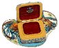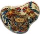 The palette is rich but the predominance is given to various shades of bright red and white oils. Gold metal powder is mixed into oils to enhance some elements of the composition. The painting is spread on the box's lid.The installation is consist of a plate and a box. On a plate we can see a cock fight, that reminds us to fighting boys on a box...The plate is stands on three glass round feet.