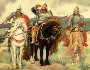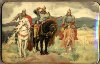 The original scene was painted by famous Russian painter Victor Vasnetsov in 1898. This oil on canvas is hang in The Tretyakov Gallery, Moscow, Russia. Here we can see three famous Russian Bogatyrs:Dobrynya Nikitich, Ilya Muromets and Alyosha Popovich.