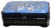 The box's exterior is decorated with so called "scan patterns" composed of tiny beads and romps hand punched from silver metal sheets and then painstakingly affixed by hand to the box.