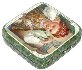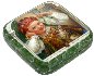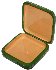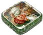 Yellow lacquer mixed with aluminum paint completes the interior of the box. The exterior of the box is painted with a green color imitated a green marble.