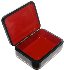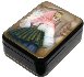 The scene is outlined with gold line. The box's exterior is painted with black lacquer. The interior is traditionally red.