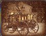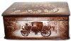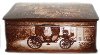 The box is painted in mono-chromic style. Gold paint is used to headlight the carriages and making the luminous affect from the Bolshoi Theater. On the sides of the box we also can find different carriages.