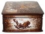 The box exterior is covered with a black lacquer. The box's interior is traditionally covered with red lacquer.