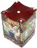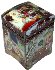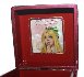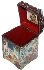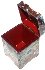 The box is made out of paper-mache. Red lacquer mixed with a silver paint covers the box's exterior bottom and red lacquer covers the interior of the box. A hinge has been fastened to the top of the composition, and the box rests on five pearl legs. The work is signed with the artist's name, the year of 2012 and the title on the inner side of a lid on a square piece of mother-of-pearl over Alice's portrait.