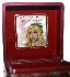 The work is painted in Maslov's recognizable style. The composition is filled with an innumerable number of masterfully painted details. Silver and gold powder shine through the oils accentuating richness of the characters' costumes and some other minor details. Strait bands of mother-of-pearl are set into the front and back sides and to the top side.